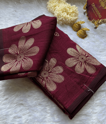 •  Vichithra silk saree with foil prints