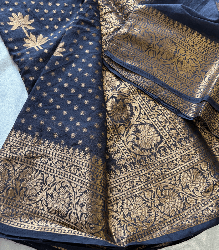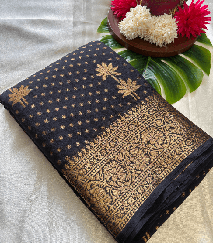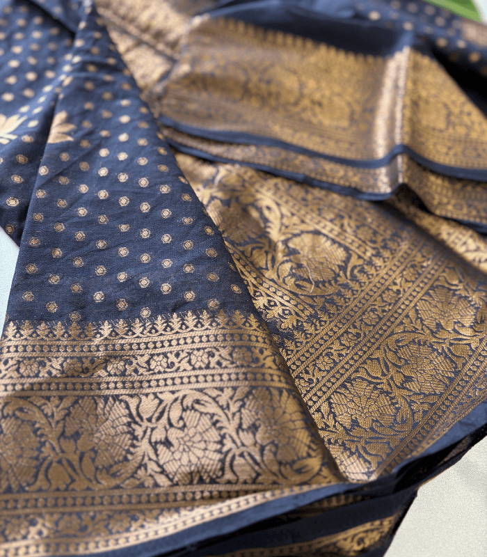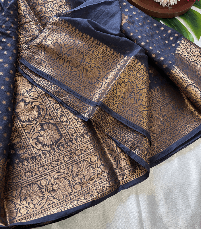 - Fabric: Semi Banarasi sarees – soft, breathable, and lightweight