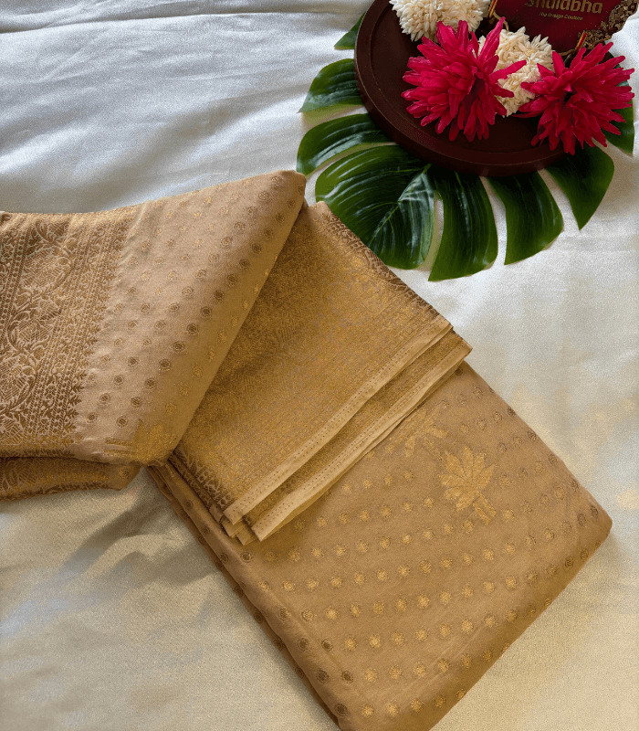 - Fabric: Semi Banarasi sarees – soft, breathable, and lightweight
