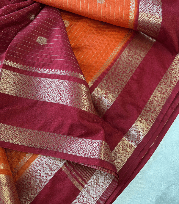 - Fabric: Semi Banarasi sarees – soft, breathable, and lightweight