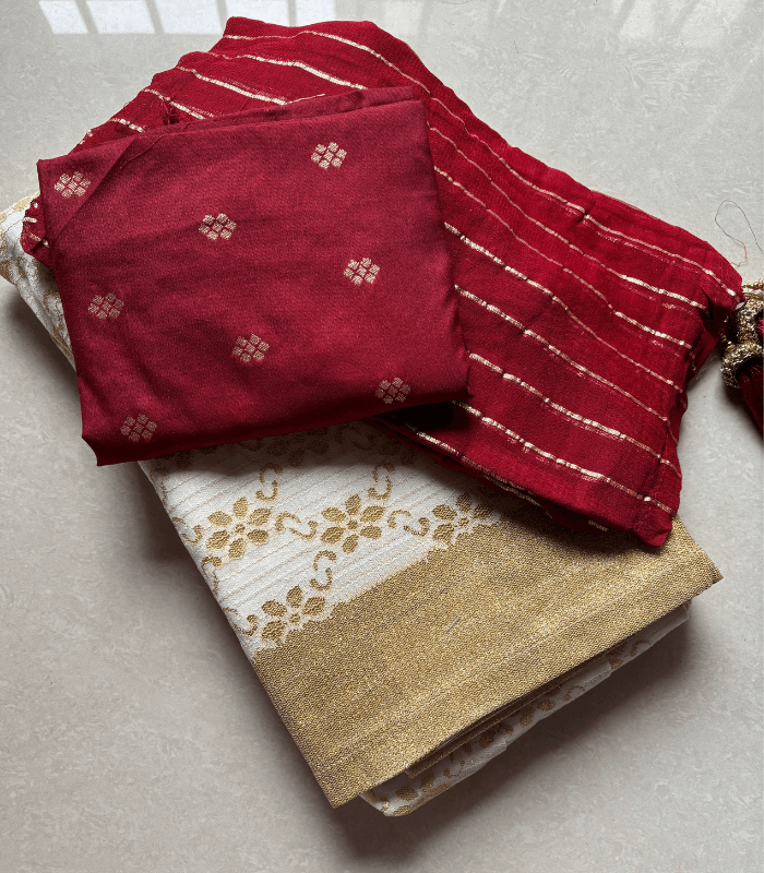 tep into timeless elegance with our Kerala Dawani, a perfect blend of traditional charm and contemporary grace. Crafted from premium-quality handloom cotton, this saree ensures unmatched comfort and breathability, making it ideal for all-day wear.