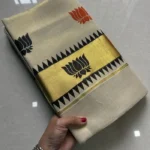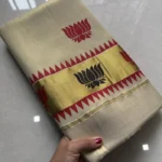 - Design: Traditional Kerala Kasavu with golden zari border
