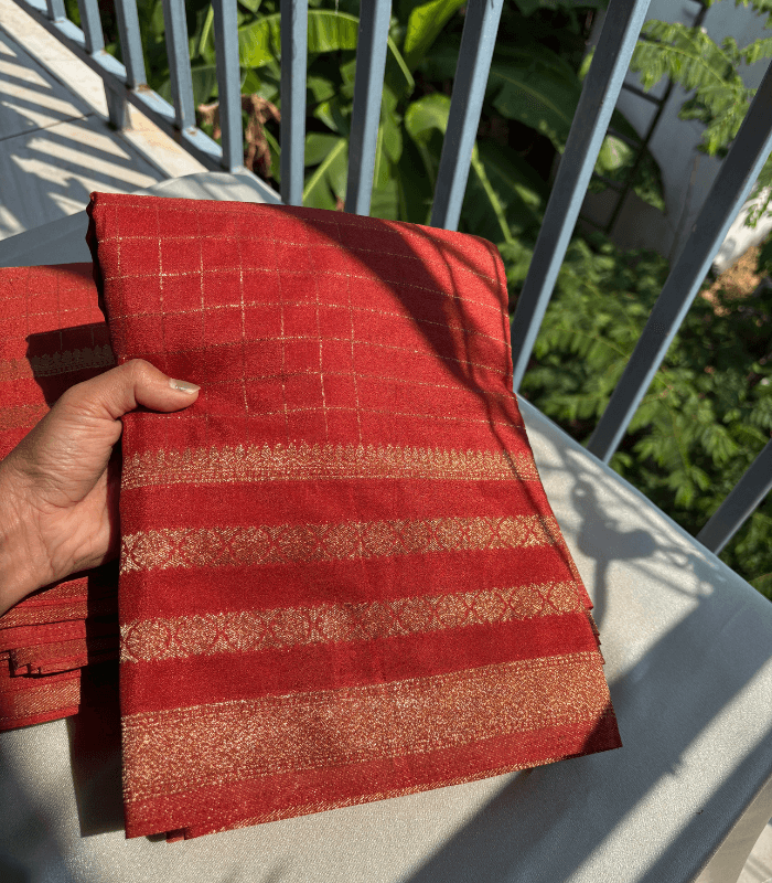 - Fabric: Semi Banarasi sarees – soft, breathable, and lightweight