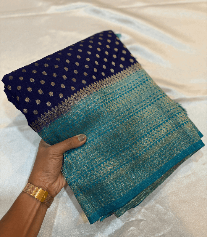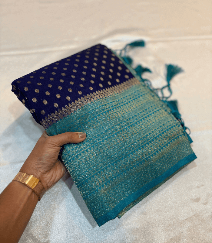 - Fabric: Semi Banarasi sarees – soft, breathable, and lightweight