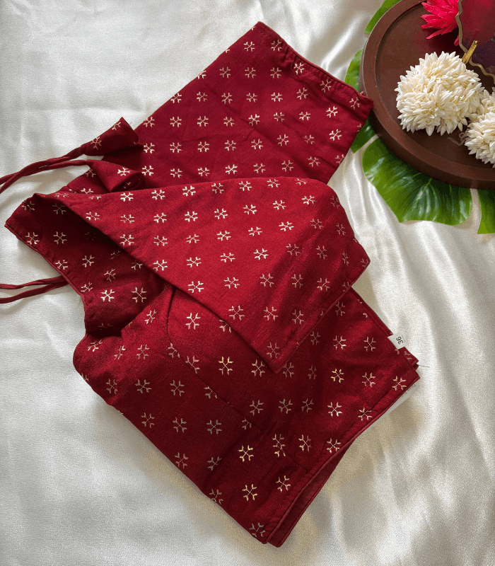 Add a touch of traditional elegance to your wardrobe with our beautifully crafted handwoven silk cotton blouses. Designed with intricate golden zari polka dot motifs and soft lining for added comfort, these blouses pair perfectly with Kerala sarees, cotton sarees, or festive silk drapes.