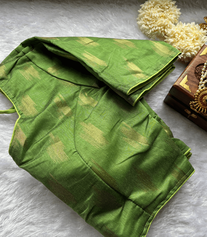 Add a touch of traditional elegance to your wardrobe with our beautifully crafted handwoven silk cotton blouses. Designed with intricate golden zari polka dot motifs and soft lining for added comfort, these blouses pair perfectly with Kerala sarees, cotton sarees, or festive silk drapes.