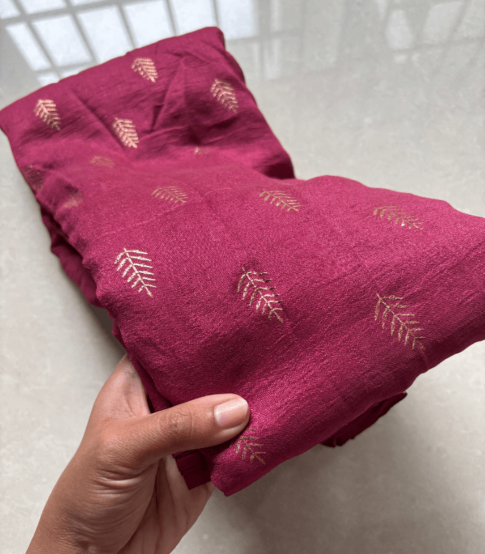 Vichithra material saree offers a soft, breathable, and lightweight texture that keeps you comfortable even during long hours of wear. Its airy fabric is perfect for the warm climate, while still draping gracefully to enhance your natural poise.