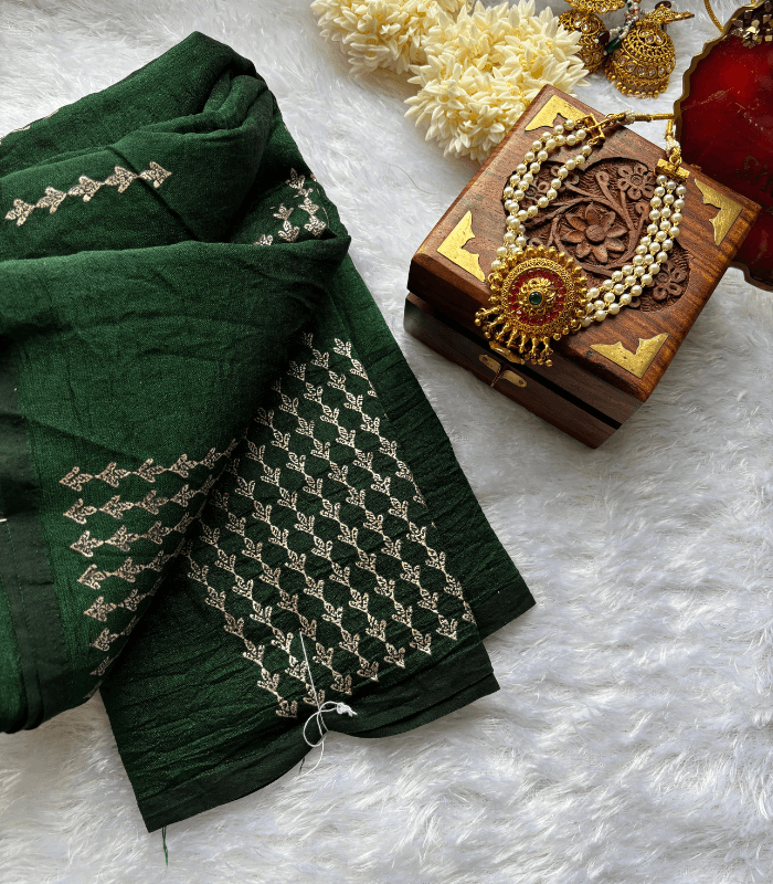 - Fabric: Vichithra silk sarees – soft, breathable, and lightweight